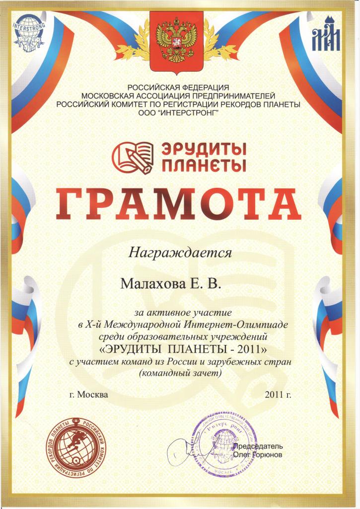 Грамоты: | |